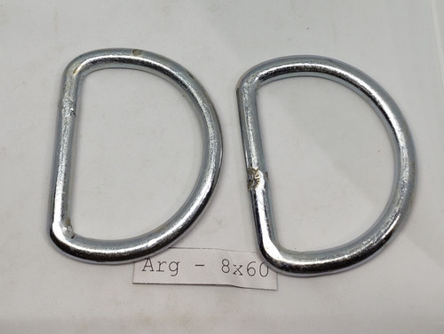 Argolla de hierro zincado en forma de D de 8 mm de espesor y de 60 mm de diametro interno.