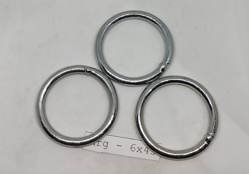 Argolla de hierro 6 mm de espesor y de 45 mm de diámetro interno. Las mismas son soldadas y zincadas.