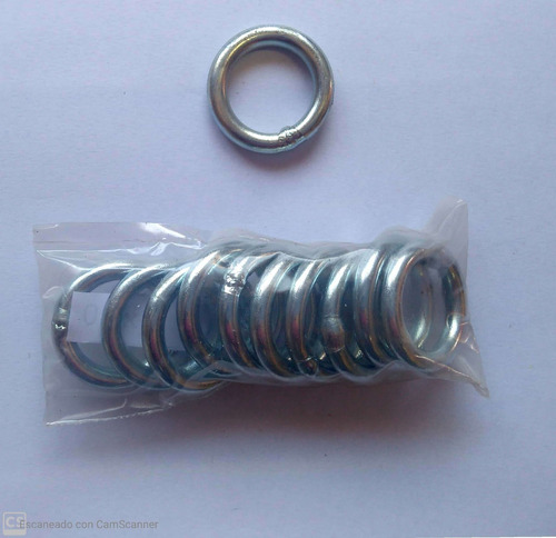 Argolla de hierro 6 mm de espesor y de 55 mm de diámetro interno. Las mismas son soldadas y zincadas.