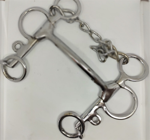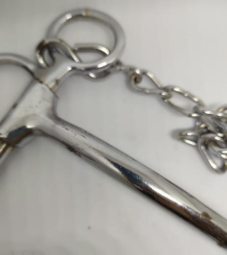 Bocado de trefilado redondo, de piernas especiales adaptadas para el deporte, bocado barra, cromado, utilizado mayormente en actividades de polo, según estándares de dicha reglamentación.