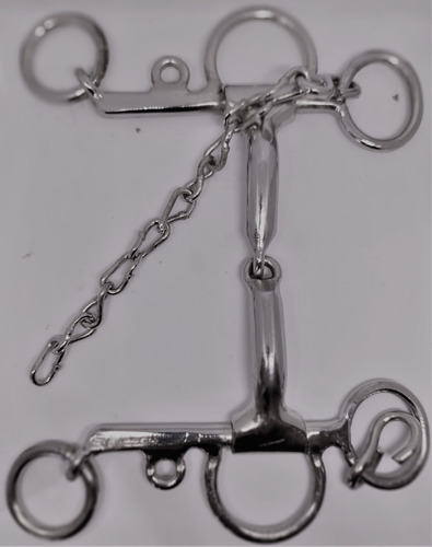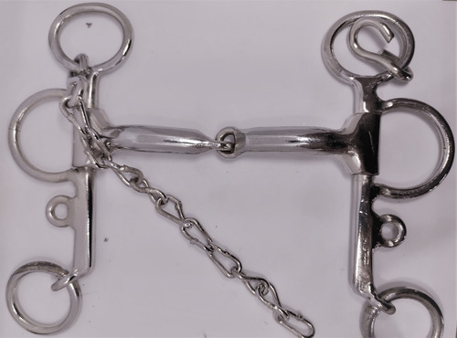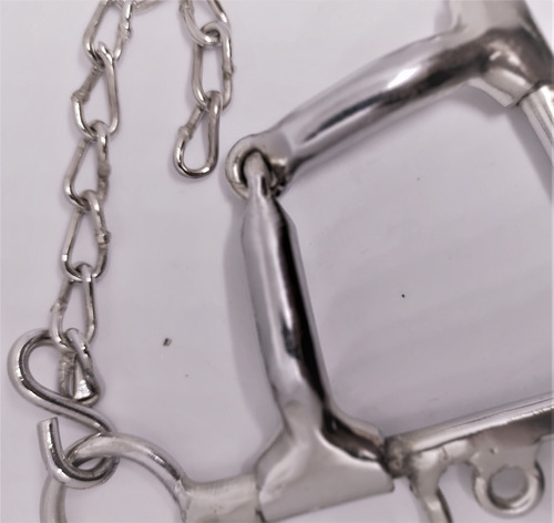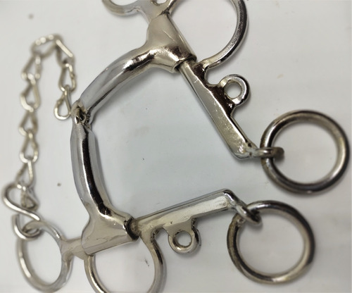 Bocado de trefilado redondo, de piernas especiales adaptadas para el deporte, bocado filete, cromado, utilizado mayormente en actividades de polo, según estándares de dicha reglamentación.