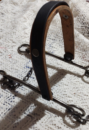 Freno de hierro rígido adaptado para la actividad de amanse del caballo, con una protección de suela para evitar la lesión del mismo.